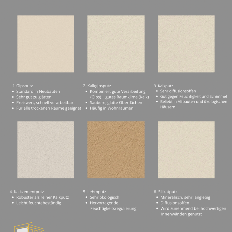 Deshalb stellen wir Ihnen hier die sechs wichtigsten Innenputzarten vor – mit ihren Vor- und Nachteilen.